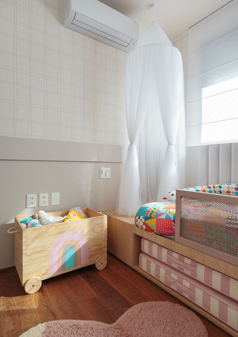O casal jovem, com duas filhas pequenas, comprou o apartamento recém-entregue pela construtora pela proximidade da escola das meninas, mas a divisão original da planta não atendia em nada aos desejos e necessidades do casal. Por isso, fomos consultadas antes da compra, para entenderem se seria possível, com a reforma, terem tudo o que queriam.